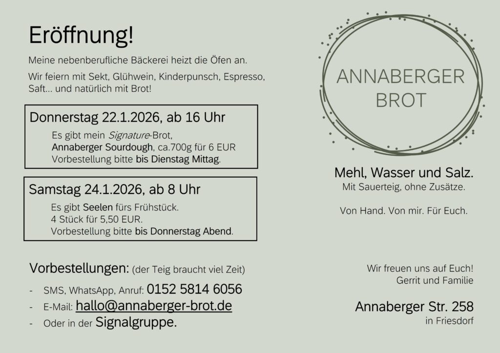 Insofern: Die letzten Handgriffe noch, und dann kann es bald losgehen mit dem offiziellen Start der Bäckerei “Annaberger Brot”! Und dann gibt es eine Party!